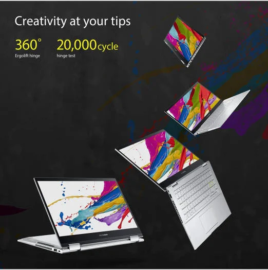 Acesta nu este un laptop obișnuit. Este cu adevărat ușor și datorită designului său pliabil la 360° și carcasei ultradurabile, se transformă instantaneu într-o tabletă.